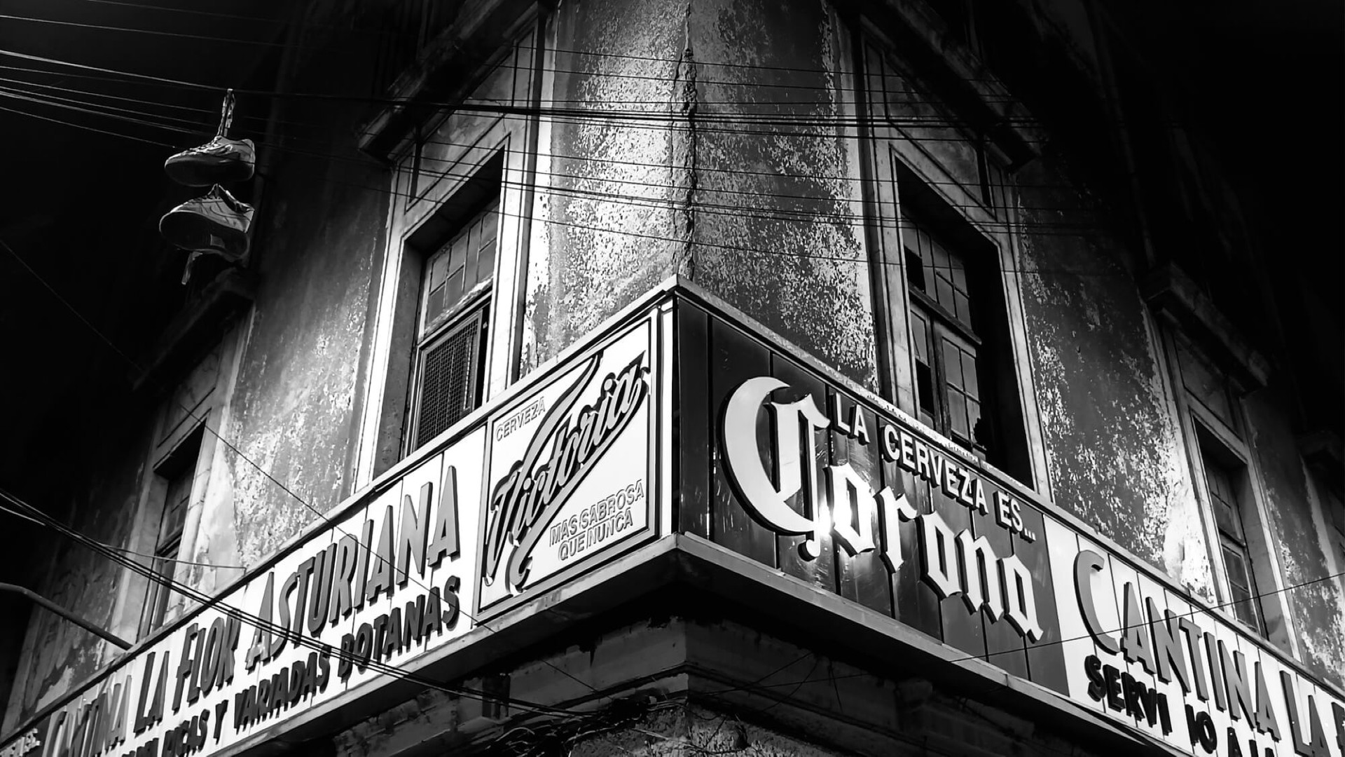 A door opens slightly on a busy corner. La puerta con el espejo. The noise of the traffic briefly subsides. A women's voice. "Pásele caballero. Pásele. Aquí están las chicas. Pásele."